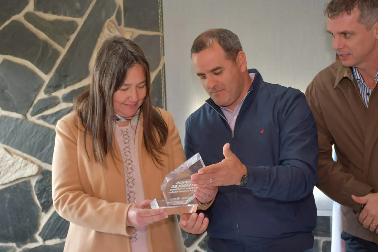 Ariel Stuker recibió una importante distinción por parte del Ente Nacional de Obras Hídricas de Saneamiento, de la mano de Enrique y Mayda Cresto.